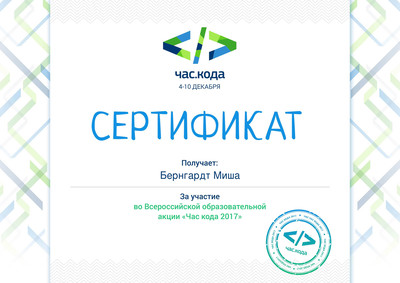 Ребята с большим удовольствием просматривали видеоролики. Когда в конце урока они занялись программированием, были приятно удивлены тем, что это очень интересно и совсем не сложно. Многие обещали продолжить работу дома и выполнили своё обещание, подтвердив свои успехи сертификатами. Особенно им были рады школьники младших классов.