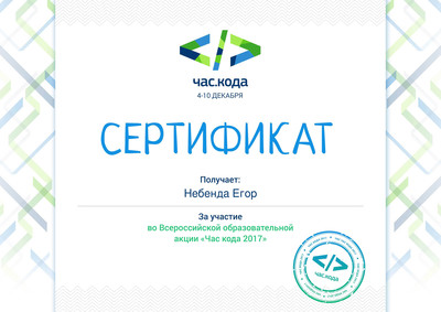 С 4 по 8 декабря 2017 года ученики нашей школы (всего 218 человек) приняли участие в акции «Час кода в России» в рамках международной акции «Всемирный час кода». Акция была направлена на повышение интереса учащихся к ИТ, поддержку интереса к изучению информатики и программирования. Весь материал мы нашли на сайте www.coderussia.ru (методические рекомендации, видеоролики и онлайн - тренажёр).